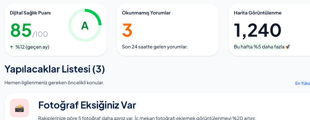 Google Haritalara işletme ekleme, Google Benim İşletmem hesap yönetimi ve yerel SEO hizmetleri. 24 saat içinde işletmenizi Google'da görünür yapıyoruz.