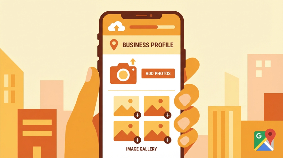Google İşletme Profili'ne fotoğraf ekleme rehberi: Kapak fotoğrafı, logo, iç mekan, dış mekan ve ürün fotoğrafları. Boyut ve kalite gereksinimleri.